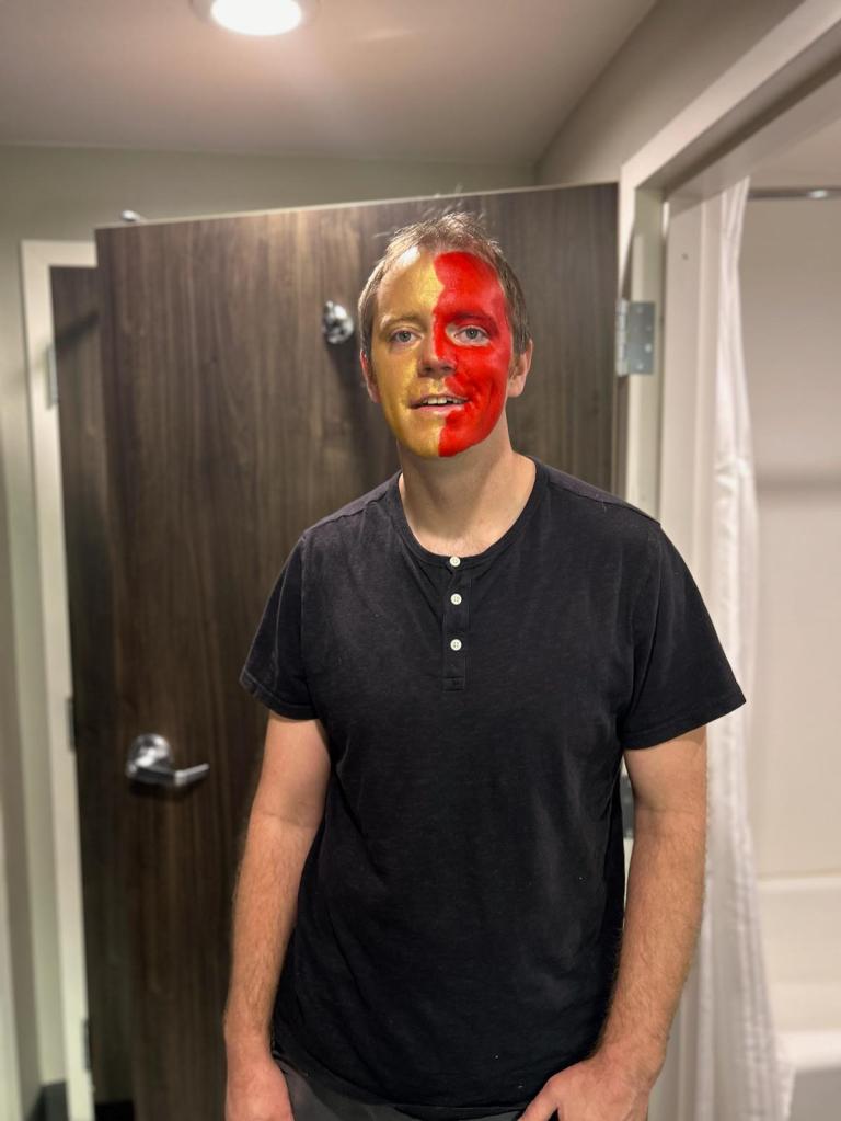 Of course, my daughter isn’t the only member of SBC, and I have watched—over the last season—the growth of many young athletes. I have watched them go on their own little journeys as they find what it means to be themselves. Just like my daughter, I think they have found that thing—that little spark—that drives us ever onwards. Watching all these young athletes so worked up over something gets me all in the feels. I mean, if you came to one of their cheer competitions you might have seen a crazy looking guy with half his face painted scarlet and the other half gold. Yeah, that was me, and yes that was because I was inspired by their greatness.